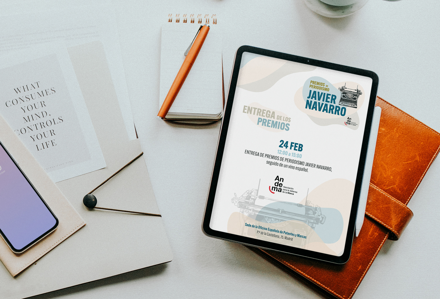 La Asociación para la Defensa de la Marca (ANDEMA) impulsó la creación de unos premios de periodismo destinados a reconocer a los profesionales que defienden y ponen en valor las marcas. Para este proyecto, me encargaron el desarrollo integral de su identidad: desde el diseño del logotipo hasta la conceptualización del universo visual que da forma al evento. A lo largo de cuatro ediciones, la marca ha evolucionado de manera orgánica, refinando su lenguaje y ampliando sus aplicaciones. He acompañado este crecimiento desarrollando todas las piezas clave de comunicación: save the date, proyecciones para la gala, campañas de emailing, presencia en redes sociales y el diseño de los propios trofeos.
